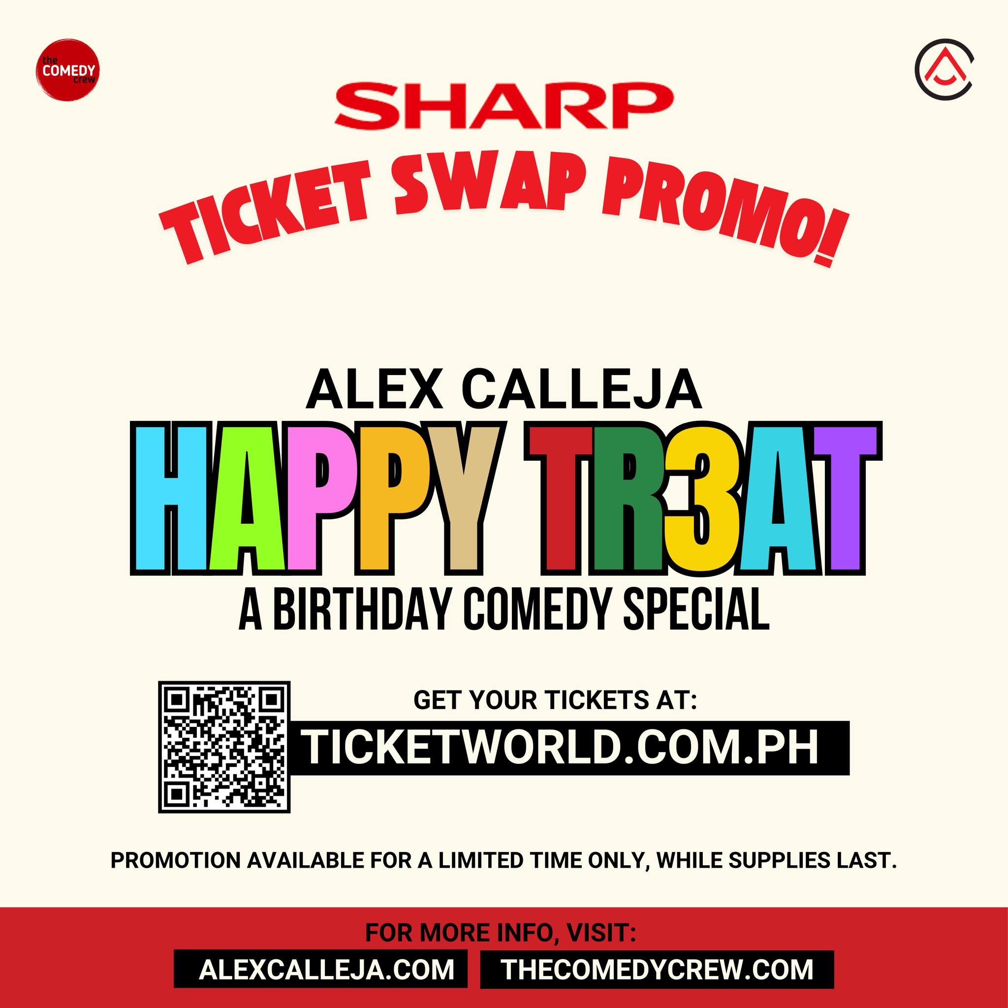 SHARP TICKET SWAP PROMO is back for Alex Calleja’s Happy Tr3at Birthday Comedy Special 2025-09-07T16:22:27+00:00September 7, 2025|